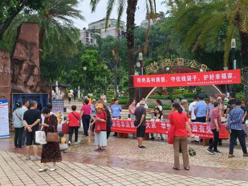 为提高人民群众防范非法集资意识和能力,6月15日上午,攀枝花市打击和处置非法集资机制办公室牵头组织市公安局、市市场监管局、攀枝花金融监管分局、人民银行攀枝花市分行在竹湖园广场举办以“守住钱袋子 护好幸福家”为主题的防范非法集资“6·15”集中宣传日活动。