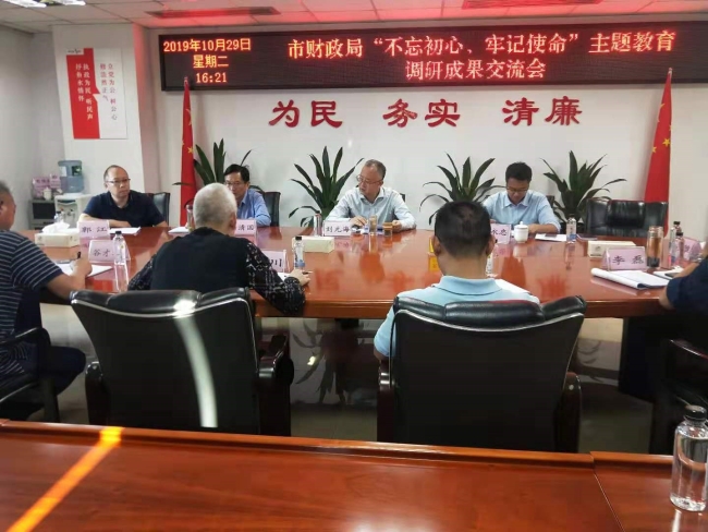 10月29日下午,市财政局召开“不忘初心、牢记使命”主题教育调研成果交流会,会议由党组书记、局长刘元海主持,全局副县级以上领导干部参加会议,市委“不忘初心、牢记使命”主题教育第三巡回指导组成员蓝永忠到会指导。