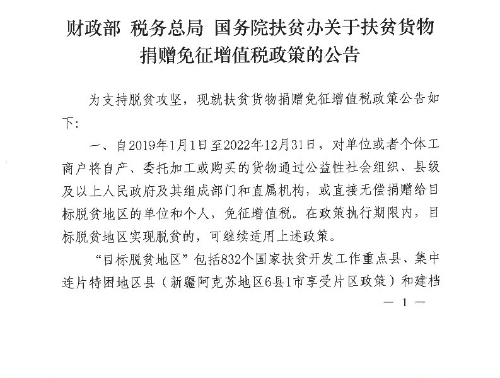 关于扶贫货物捐赠免征增值税政策的公告-pg电子游戏麻将胡了
