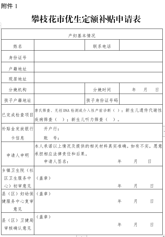 附件:1.攀枝花市优生定额补贴申请表