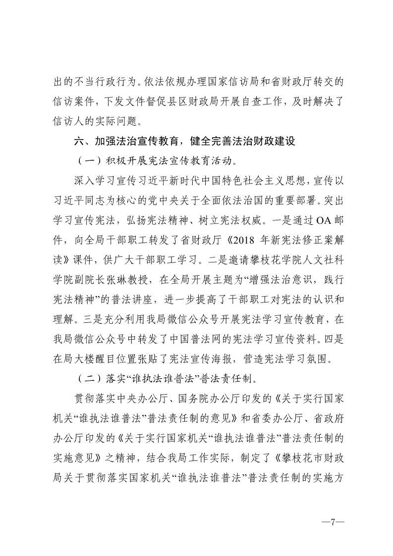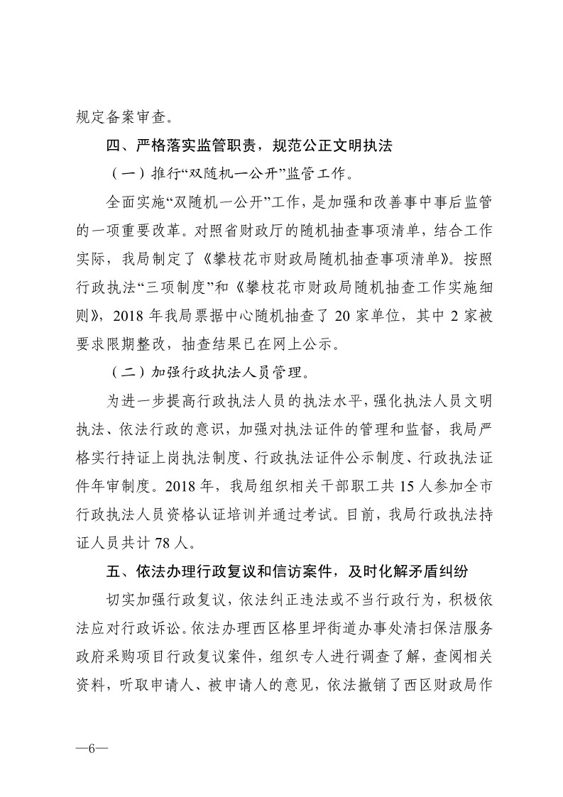 攀枝花市财政局2018年法治政府建设工作报告-pg电子游戏麻将胡了