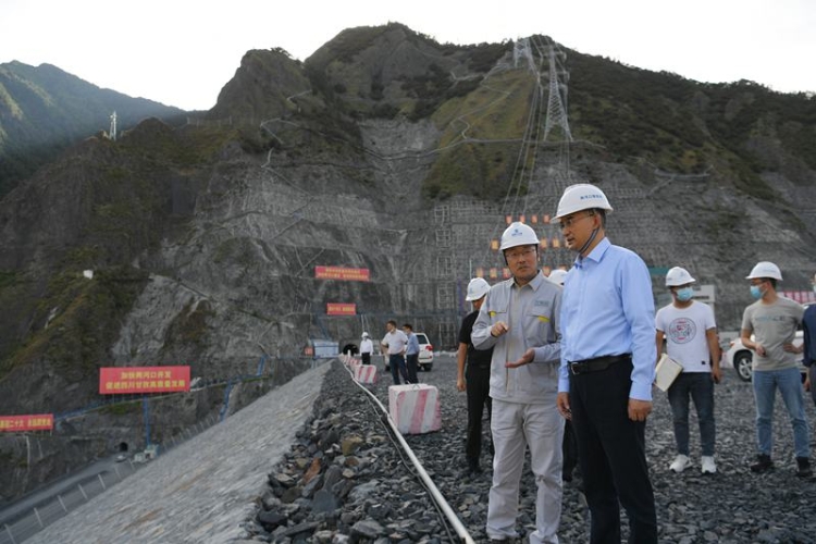 黄强在雅江县雅砻江两河口水电站大坝库区调研清洁能源基地建设情况。