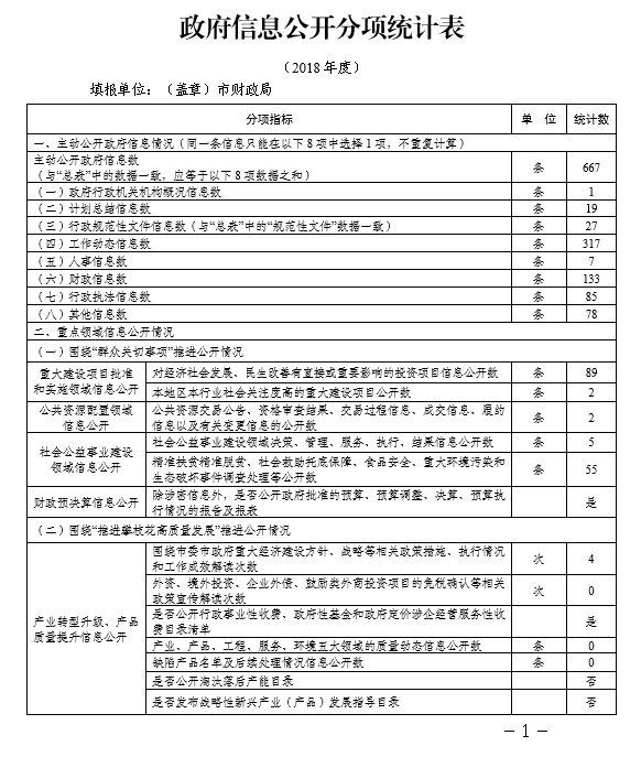 1.财政预决算信息公开情况。2018年,市财政局下发了《关于做好2018年预算信息公开工作的通知》,在延续以往年度预算公开公示的基础上,按照简洁易懂、全面完整的要求,创新预算信息公开网页界面,新增政府经济分类科目表格,全覆盖完成了2018年市本级预算公开工作。首先,市财政局主动优化预算公开网页界面,分板块划分一二级预算单位,分单位列示预算公开信息,网页界面清晰简洁、一目了然,方便公众查阅和监督,以公开透明的形式推进阳光财政建设。其次,针对今年新增的政府经济分类科目,市财政局严格按照财政厅的预算公开格式要求,新增政府经济分类科目表格,并对预算公开编制情况和相关表格进行了详细的解释说明,更为直观全面地展示政府预算情况,做到了预算公开依法依规、保质保量和全面完整。截止2018年9月底,市本级、各县区财政部门及所有预算单位均在法定时限内,向社会公开了财政预算、部门预算、“三公经费”预算和政府采购预算,自觉接受社会监督。